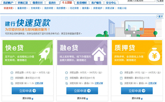 1.登录建行官网,点击建行“快贷”,点击“立即申请”,登录个人网上银行进行申请。