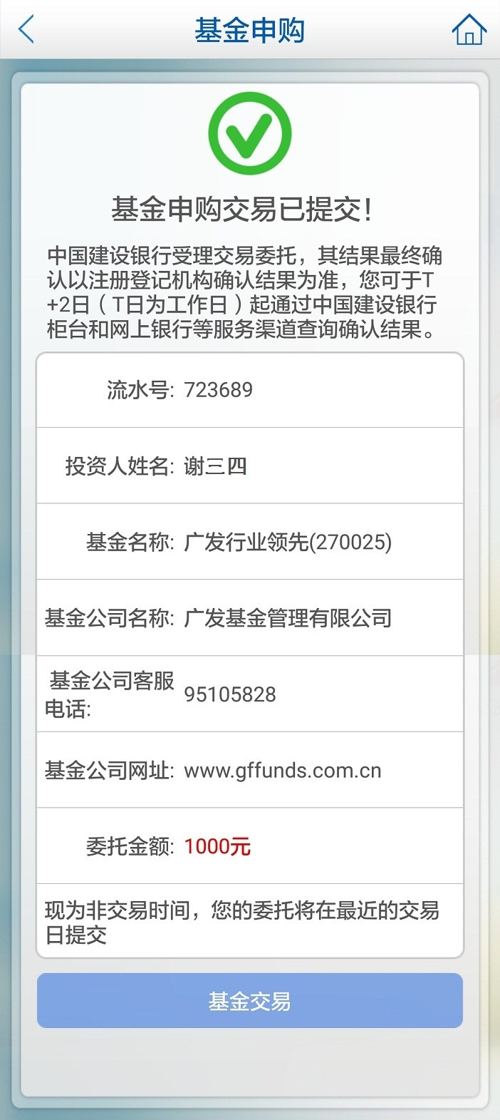 基金购买申请已受理成功,交易最终确认以注册登记机构确认结果为准。